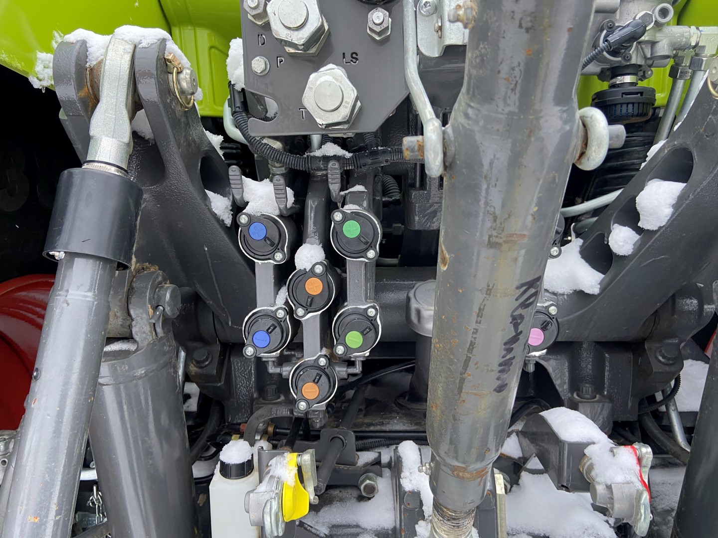 Prémium fronthidraulika, ISOBUS csatlakozóval, kihelyezett hidraulika körrel és elektromos csatlakozókkal és orsós harmadik ponttal