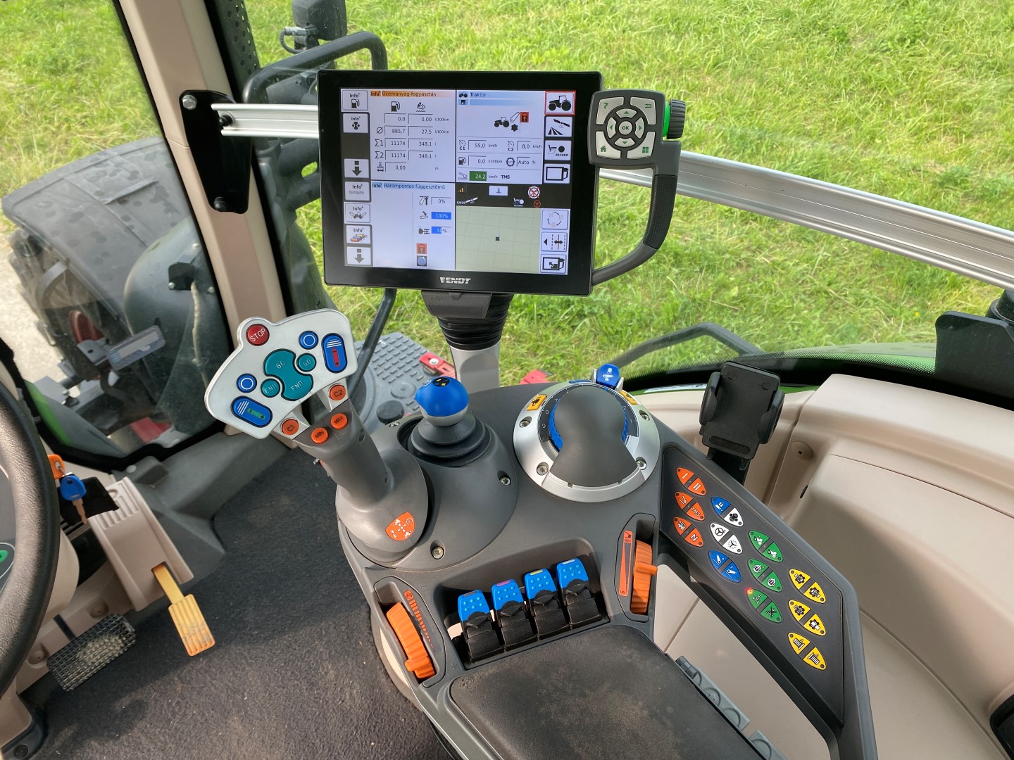 Hátsó sárvédőre kihelyezett függesztőkarokat, hidraulikát és kardánt vezérlő gombok