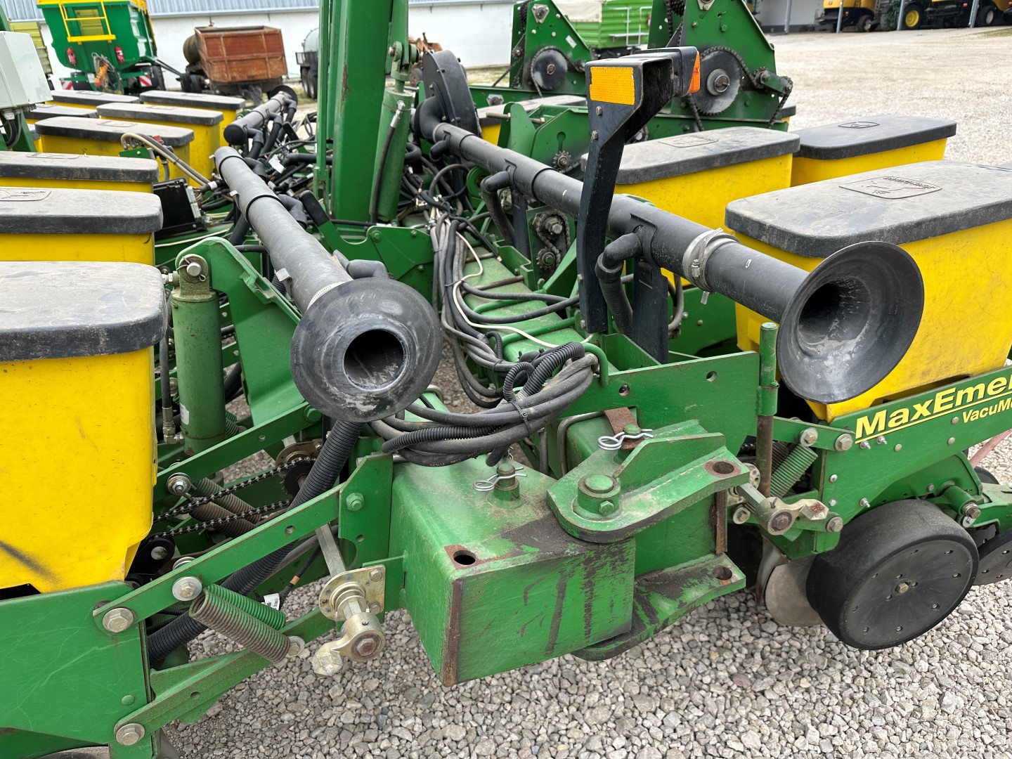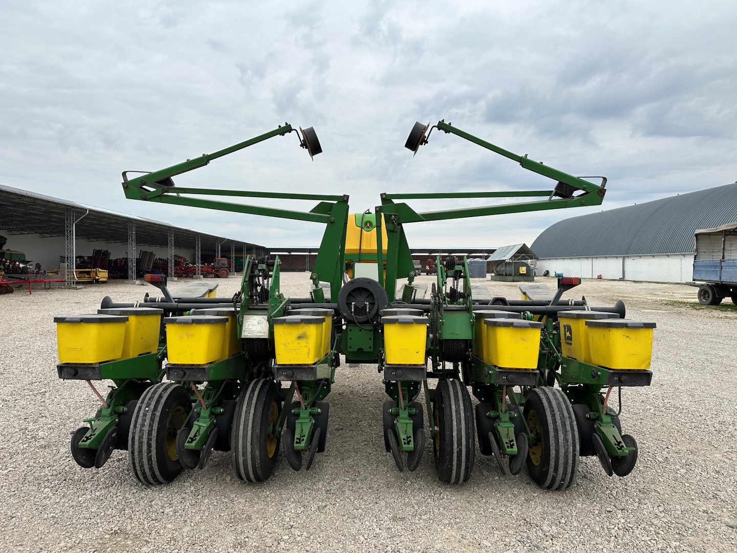 12 soros vontatott szemenkénti vetőgép, dupla mechanikus meghajtás (6-6 sor), ESET készlet, csukható váz, kukorica és napraforgó vetőtárcsa