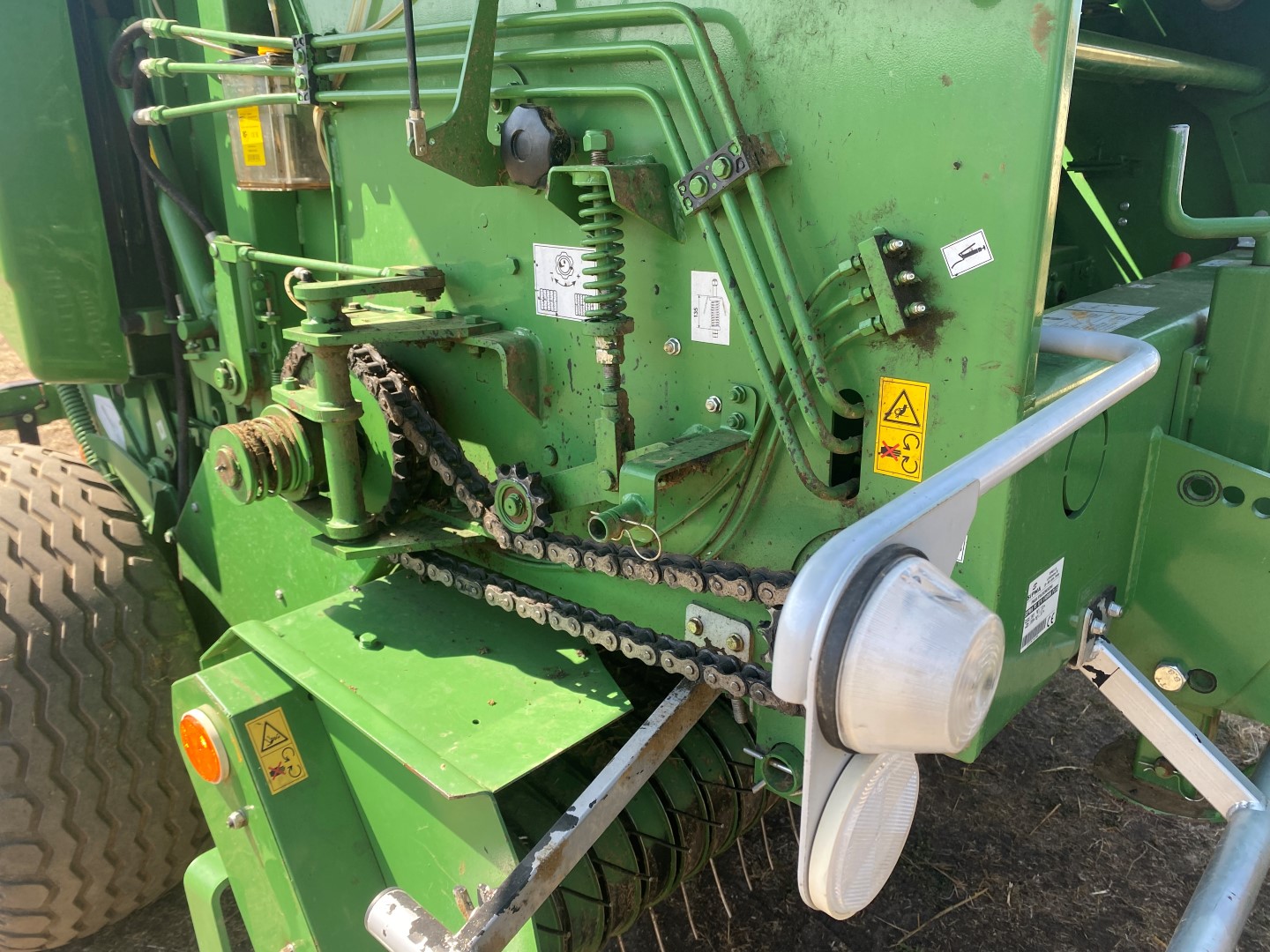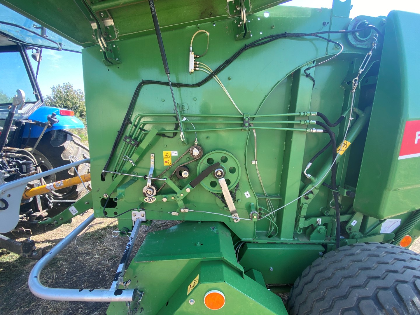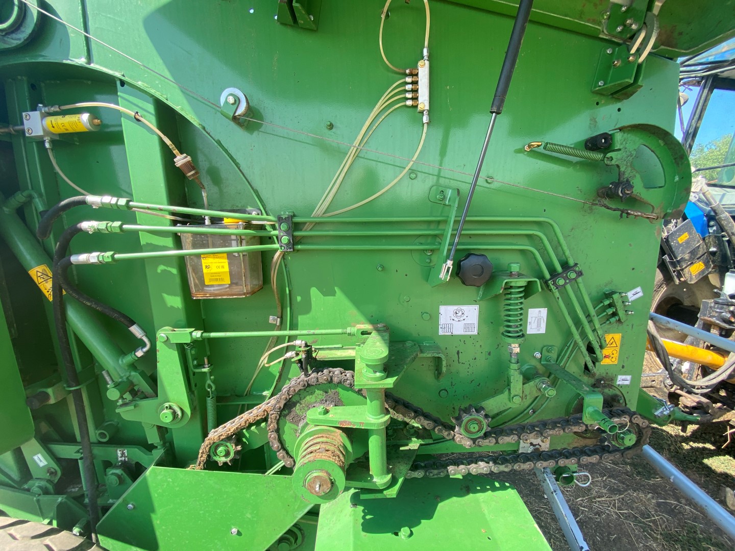 A tömörítő kamra mechanikus zárási rendszere lehetőséget nyújt nagyobb mértékű tömörítés elérésére, ami javítja a tömörített takarmány termelékenységét és minőségét. A bálázó rétegelt anyagból készült védőelemei védik a gép mozgó alkatrészeit, ugyanakkor dinamikus és modern megjelenést kölcsönöznek számára A tömörítő kamra innovatív, láncos-hengeres szerkezete tovább növeli a tömörítettség mértékét, ezáltal javítva a szilázs minőségét és a munka hatékonyságát. A fedélzeti vezérlőegység felügyeli a bálázó megfelelő működését (bálák összeszámolása, érzékelők nyomon követése, a munka hatásfokának ellenőrzése). Az ennél a típusnál alkalmazott láncos tömörítő kamra biztosítja a különféle növények hatékony felszedését, valamint a szénából és szalmából készült bálák optimális súlyát.